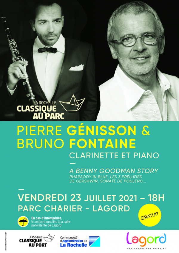 Pour cette nouvelle édition qui aura lieu au parc Charier le VENDREDI 23 JUILLET à 18 heures, venez-vous régaler de la clarinette de Pierre Génisson, lauréat du prestigieux concours international Carl Nielsen, 1er Prix et Prix du public du Concours international Jacques Lancelot de Tokyo, accompagné du pianiste Bruno Fontaine dans un répertoire haut en swing autour du célèbre Benny Goodman.